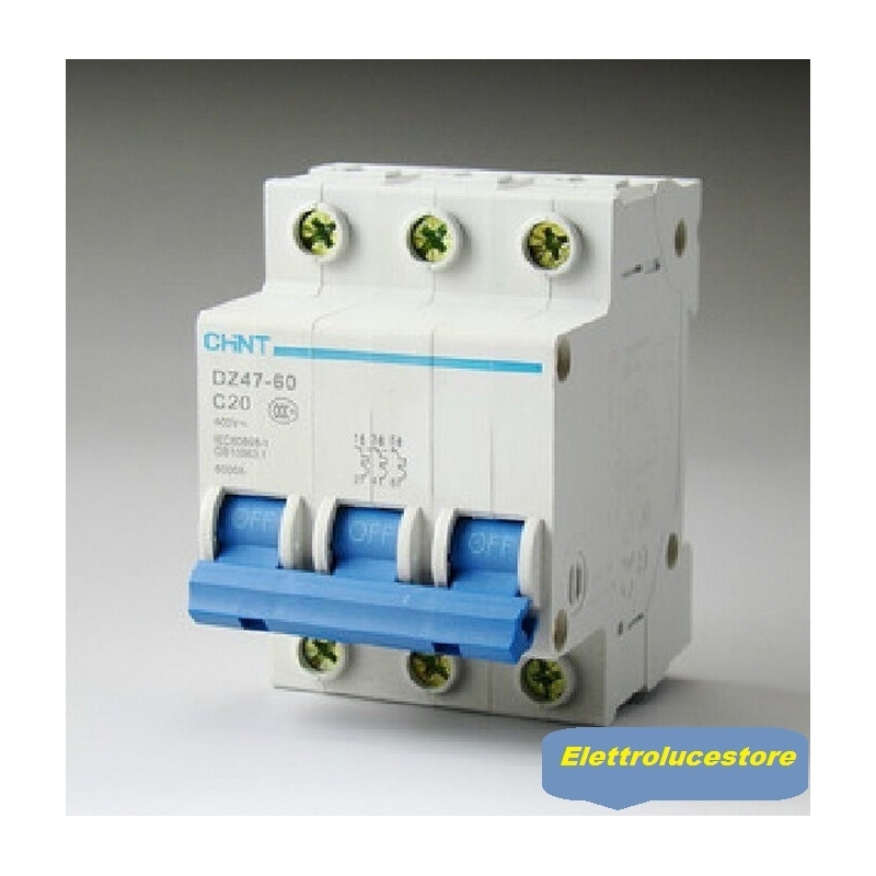 interruttore magnetotermico da guida din quadro 25a 3poli 4,5ka 3 moduli chint 41309 curva c 186504