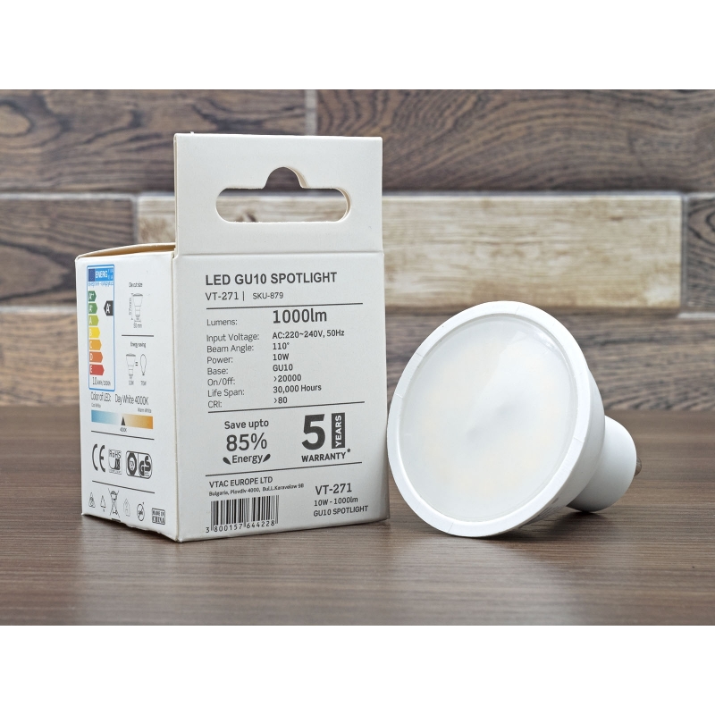 v tac pro vt 271 faretto spotlight led gu10 10w luce calda 110° chip samsung sku 878