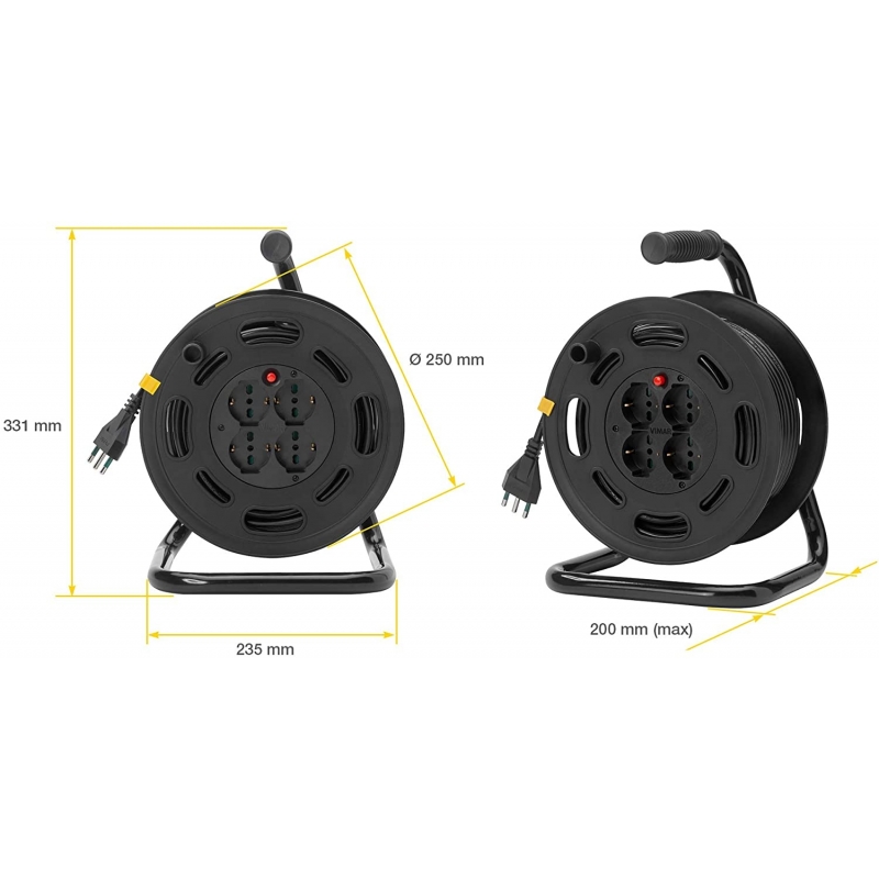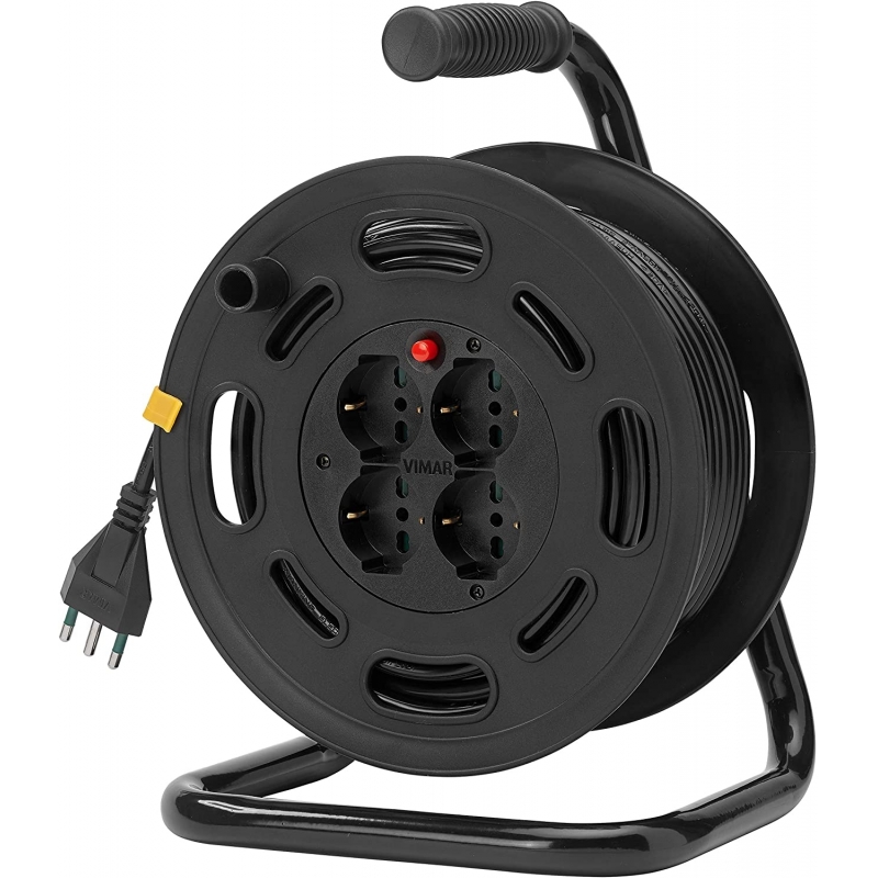 Vimar 0P32731 Avvolgicavo con disgiuntore termico di protezione, ergonomico, 16A 4 prese universali 30m