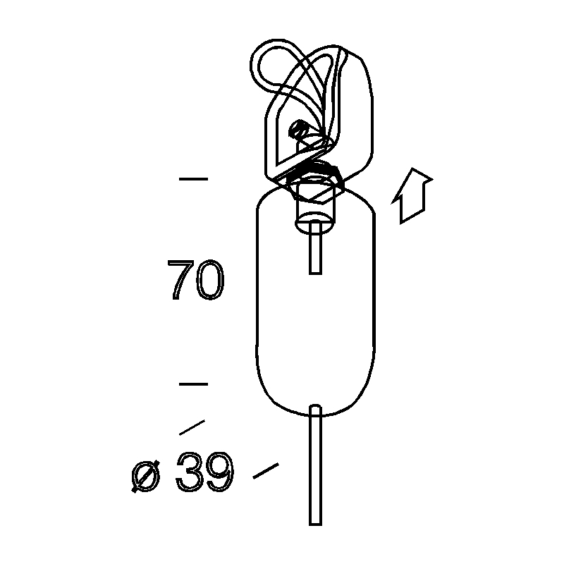 Sospensione completa di cavetto in acciaio diam. 2 mm e lunghezza 1,5 m. Carico max: kg 20. Per la sospensione dell'acc. 6018