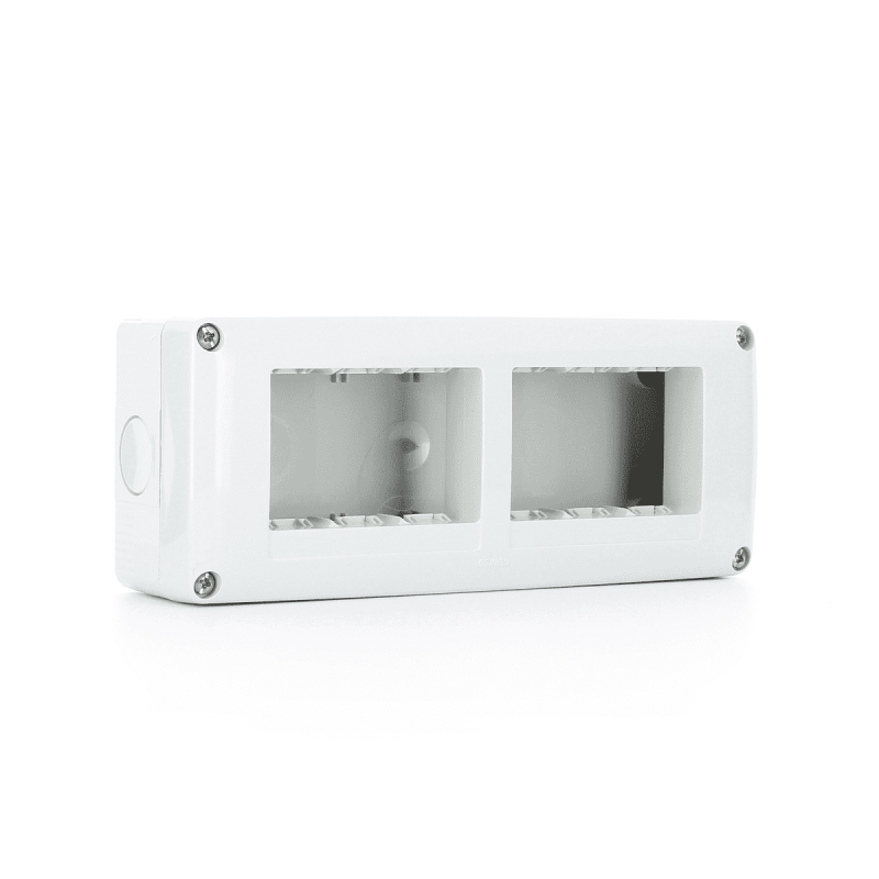 Contenitore vuoto protetto per applicazioni fisse o mobili, grado di protezione IP40, configurazione multipla. Dotato di pressacavo per tubi di diametro esterno max 20 mm. Scomparti ottenibili utilizzando gli appositi separatori funzionali