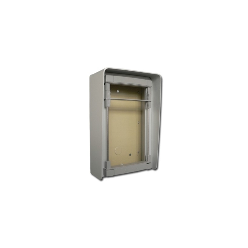 Tettuccio parapioggia in alluminio equipaggiato con telaio per due moduli della serie MODY, consente l'installazione a filo muro senza incasso delle medesime pulsantiere