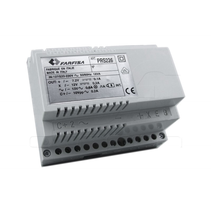 Alimentatore commutatore da 18VA con due suonerie elettroniche differenziate. Fornisce 8 Vcc e 13 Vca. Montabile su barra DIN. Per impianti a chiamata elettronica intercomunicanti collegati a posto esterno. Certificato VDE