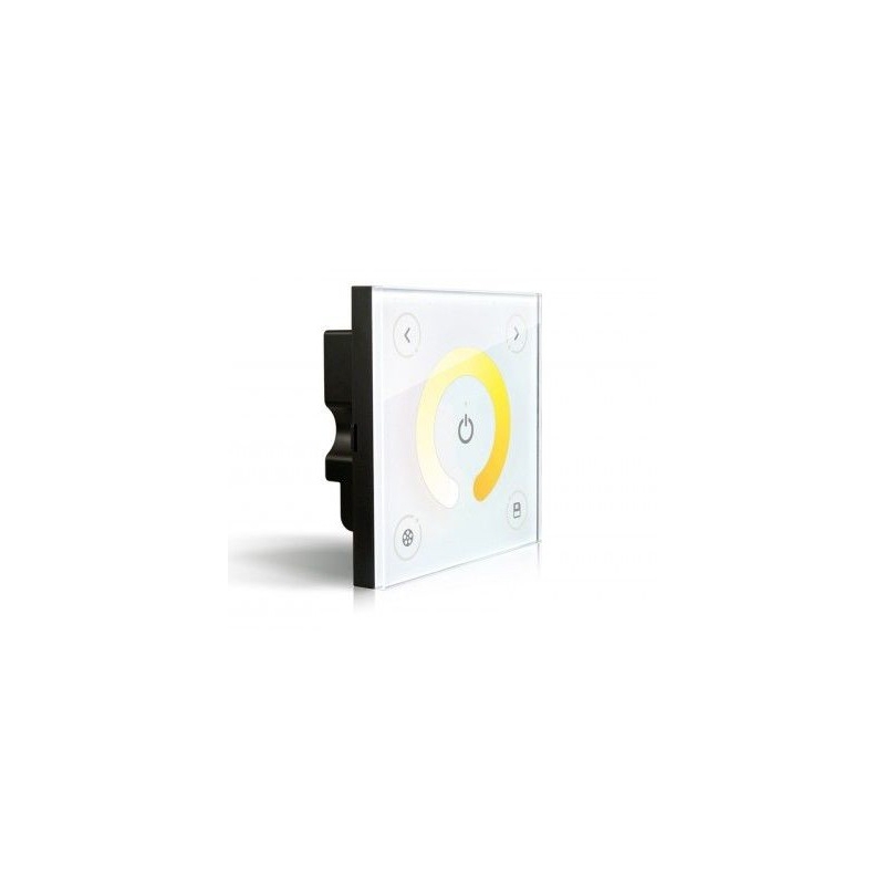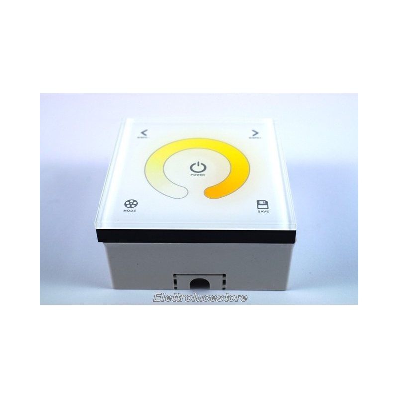 Controller touch da parete bianco CCT per strip 122 color temp. Controller completo di cassaforma pronto per l'installazione. Permette di cambiare luce da calda a naturale a fredda e viceversa.