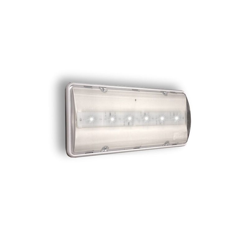 ECONOMY LED Lampada di emergenza interamente ingegnerizzata e prodotta da KROS Srl in Italia. Tipo: S.A. Lumen: 100 Comparazione vecchia tecnologia: 11W Tempo di ricarica: 12h Temperatura di funzionamento: -5°C +50°C Alimentazione: 230V Grado di protezione: IP65 Dimensione: 350x170x60 mm Corpo: ABS Schermo: Policarbonato Led: 150Lumen/1Watt Classe isolamento: II