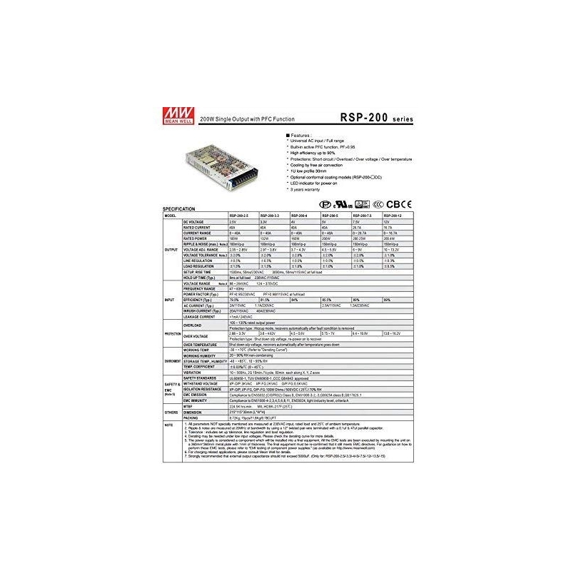 alimentatore ac dc meanwell rsp 200 24 pfc 200w 24v dc 8.4a basso h30mm 1572