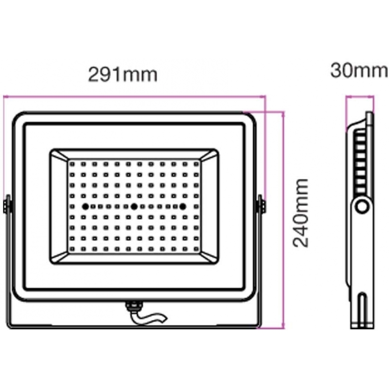 Faro LED V-Tac PRO VT-100 con potenza di 100W. Corpo ultra sottile in alluminio pressofuso di colore bianco con staffa e cavo di colore bianco e copertura in vetro trasparante. Proiettore con tecnologia LED SMD adatto all'uso esterno, grado di protezione IP65. Fascio luminoso di 100°, flusso luminoso di 8000 lm e rapporto di 80 lm/W. Il design slim, lo rende più leggero di un normale faro e più semplice da installare, oltre ad avere un'estetica più accattivante.