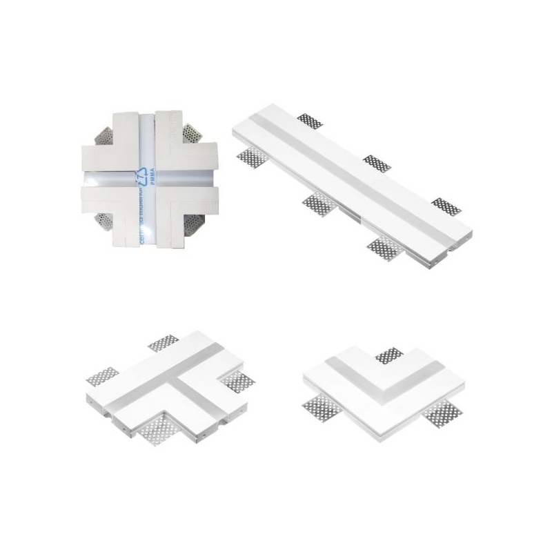 Struttura da incasso in gesso ceramico per interni,con forma a "T".