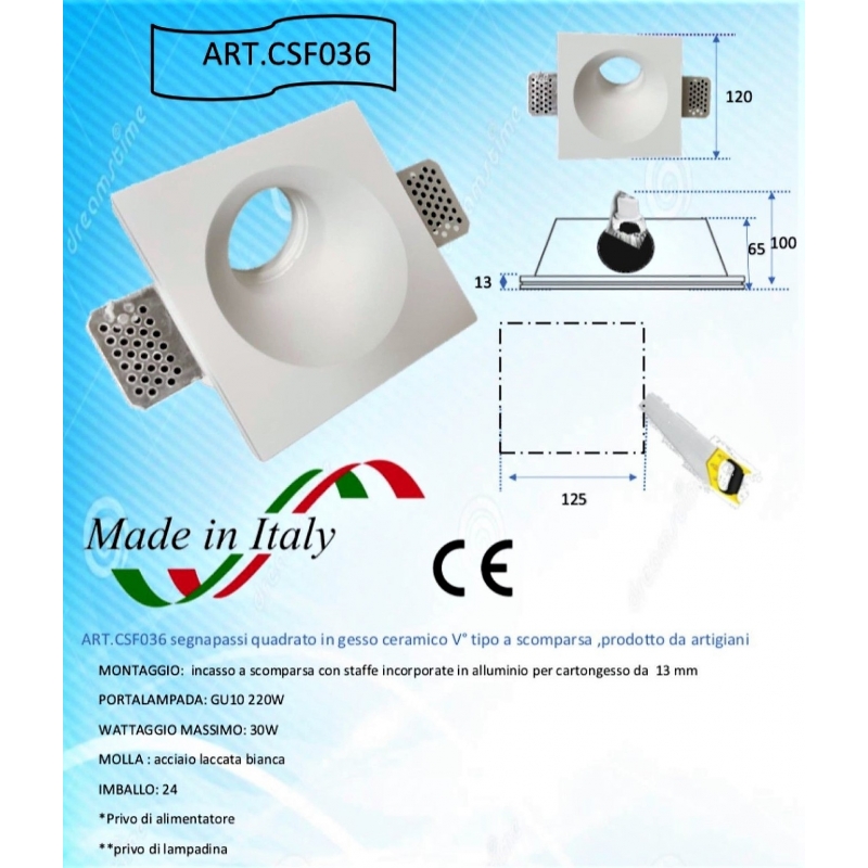 Questo modello, oltre ad essere utilizzato come porta faretti da soffitto, lo si può utilizzare come segnapassi a parete.