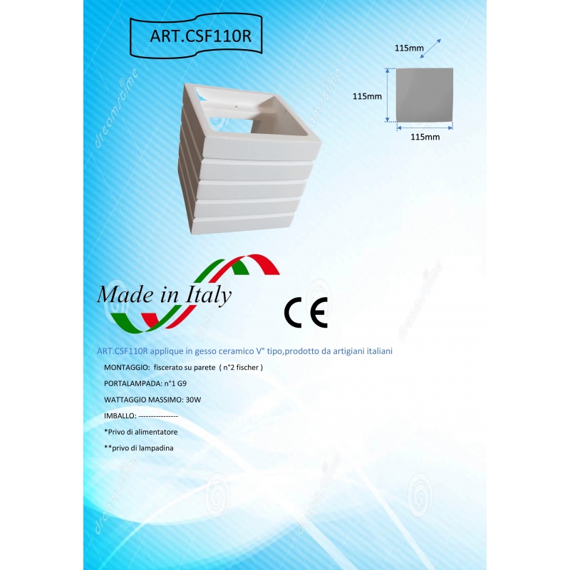 lampada applique moderno da parete in gesso verniciabile up & down cubo rigato 110R
