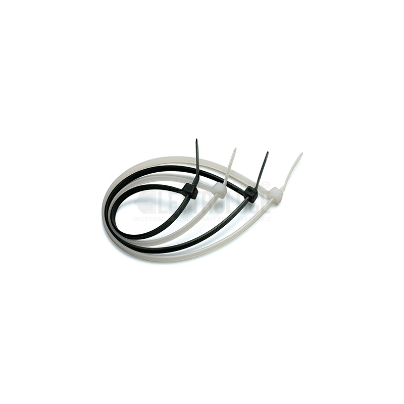 fascetta in poliammide PA6.6: autoestinguente cl.V2 (UL94); assorbimento d' umidità: 2,5% (al 50% di umidità relativa); temperatura d' impiego: da-40°C a +85°C (continua) da -40°C a +120°C (brevi periodi); resistenza agli agenti esterni: olii,basi,grassi,prodotti petroliferi,solventi clorurati
