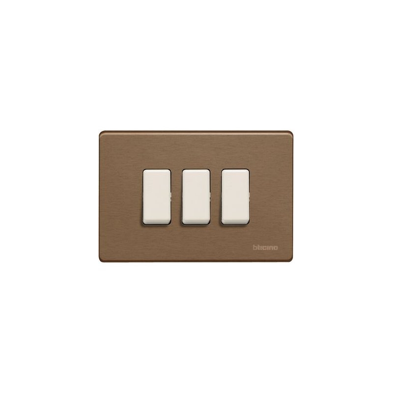bticino placca 3 posti per scatola tonda e rettangolare in alluminio colore bronzo magic bticino 503/3/BR