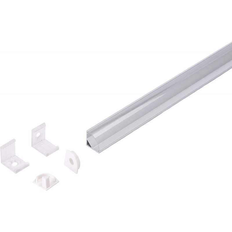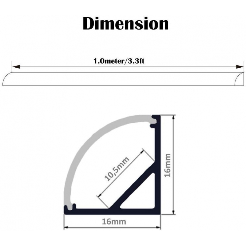 Profilo LED Alluminio Angolare 1Mt Strip 8-10MM Mod.1616 Rotondo cover trasparente .