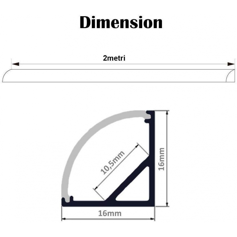 profilo in alluminio angolare 1616 curvato 2 metri cover trasparente 2161