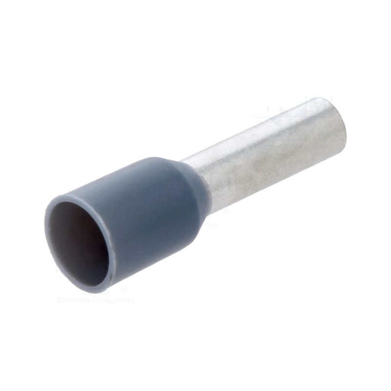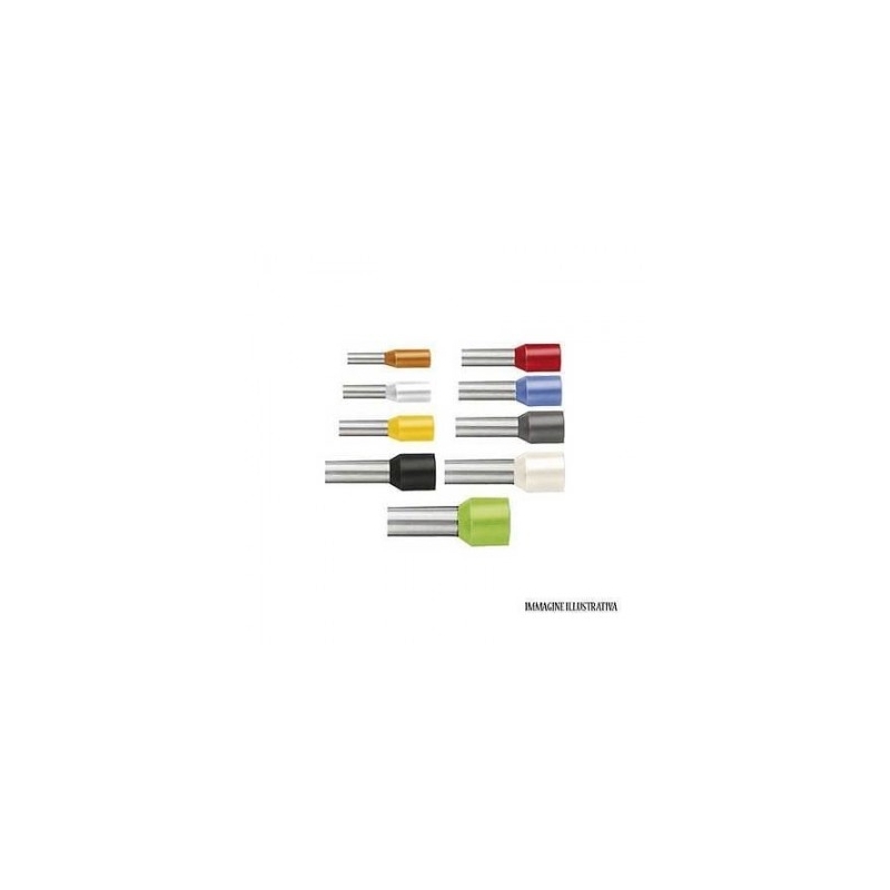 Puntalino a bussola di colore Grigio sezione cavo 4 mm² preisolato in rame elettrolitico stagnato. I terminali BM 00508 sono formati da un puntale in rame elettrolitico stagnato da 10 mm x 2,8 mm di diametro e una bussola di plastica dal diametro di 4,8 mm che rende più facile il maneggiamento del puntalino. I terminali a bussola detti anche puntalini a tubetto, sono indispensabili per il corretto cablaggio dei quadri elettrici, in quanto permettono di proteggere e rifinire l’estremità del conduttore evitando il danneggiamento dei cavetti in rame e facilitando l’inserimento nei morsetti.