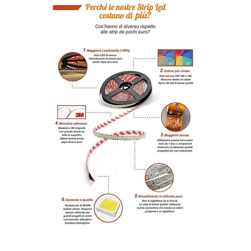 160Led/mt, (800 Led totali) questa strip Led e' tagliabile a ogni 8 Led.