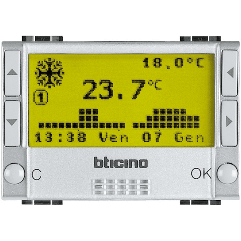 bticino living ligh tech cronotermostato a batterie giornaliero settimanale grigio chiaro