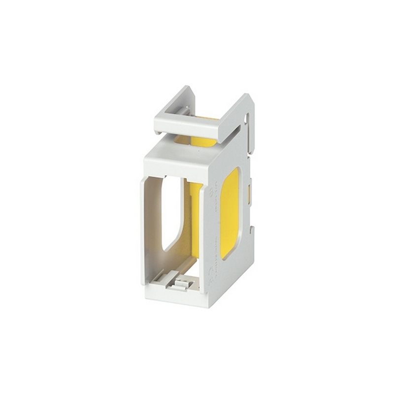 Supporto 1 modulo per installazione su guida DIN (60715 TH35) di apparecchi Eikon, Arké e Plana, occupa 1,5 moduli da 17,5 mm, grigio RAL 7035. Fornito con diaframma di protezione